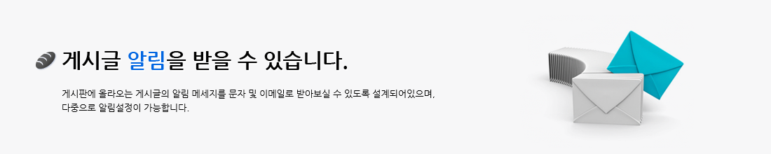 게시판에 올라오는 게시글의 알림 메세지를 문자 및 이메일로 받아보실 수 있도록 설계되어있으며, 다중으로 알림설정이 가능합니다.